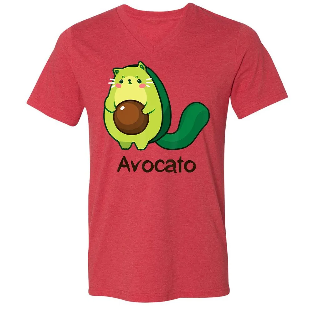 Avocato Avocado Cat Avogato Kitten Kitty Whiskers Cute Funny Unisex V-Neck T-Shirt