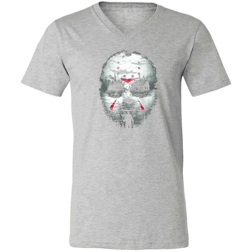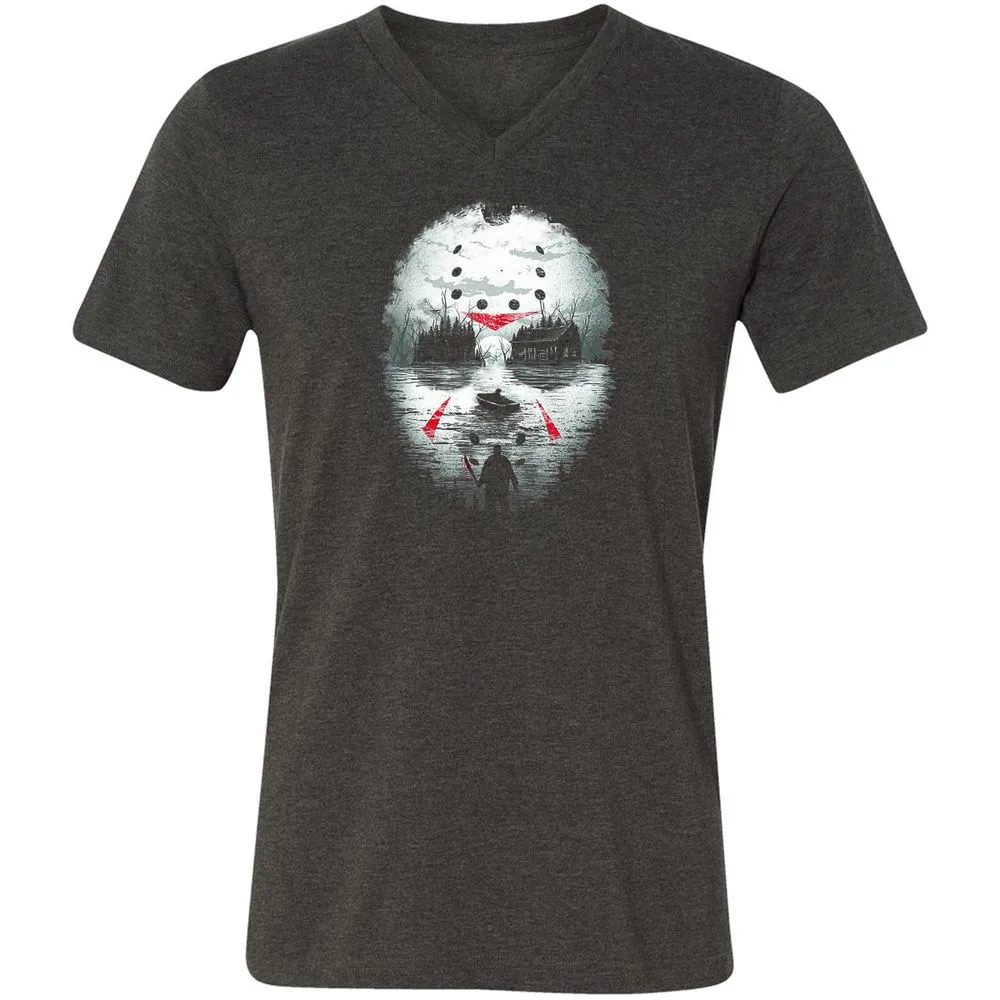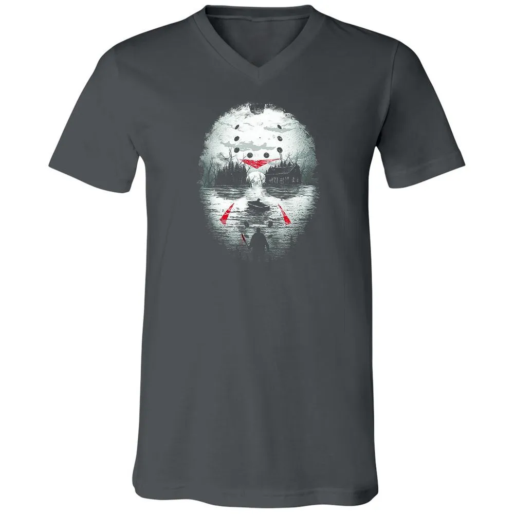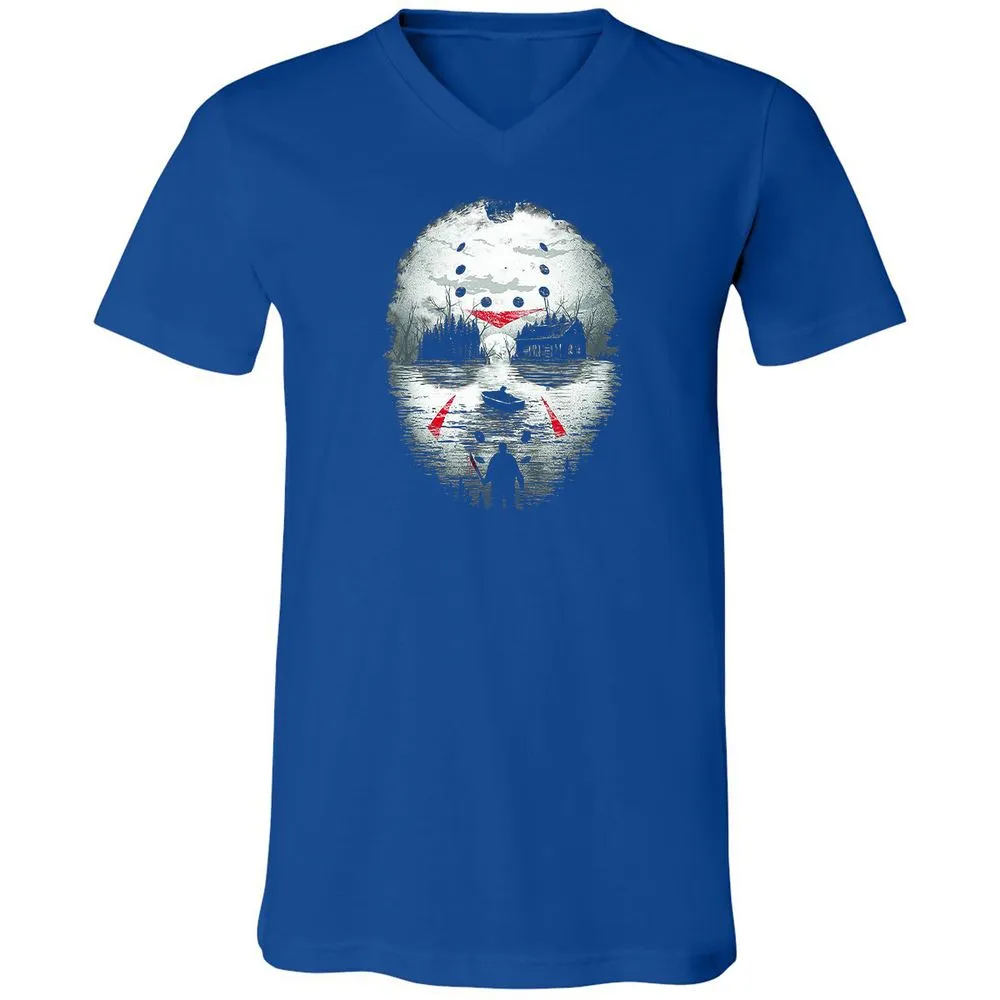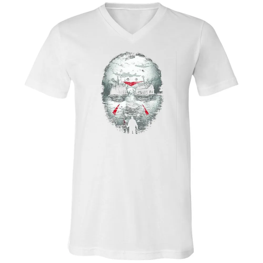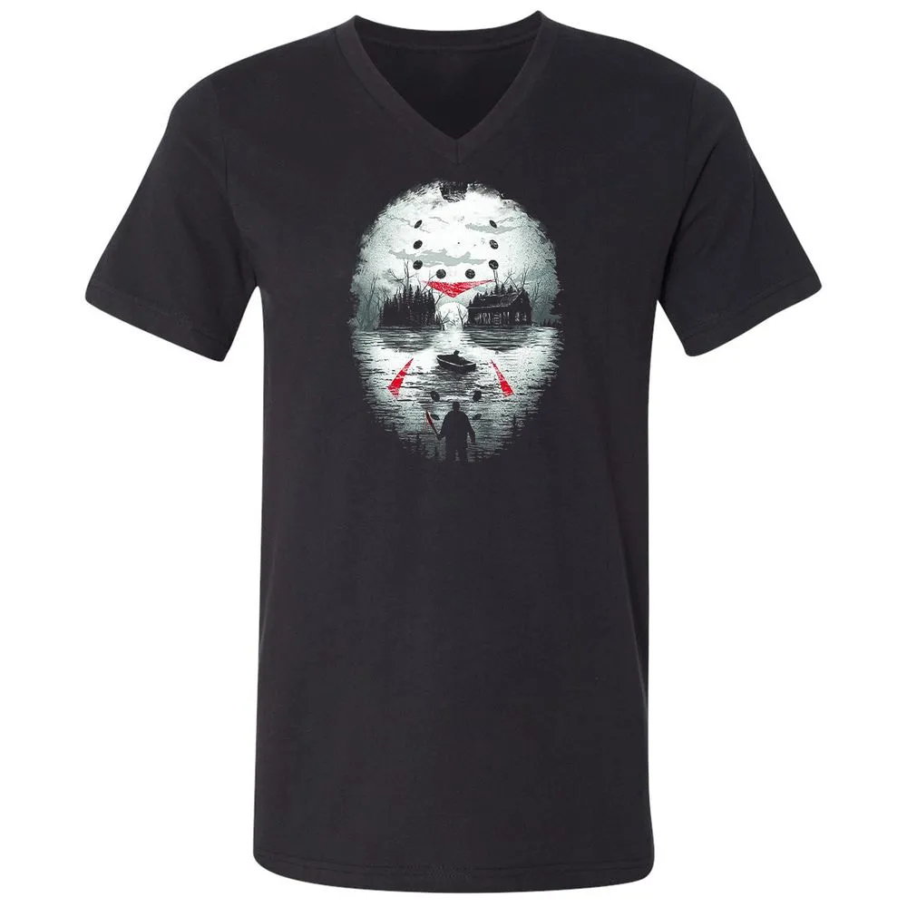 Jason Halloween Mask Horror Graphic 13th Friday Funny Gift Unisex V-Neck T-Shirt