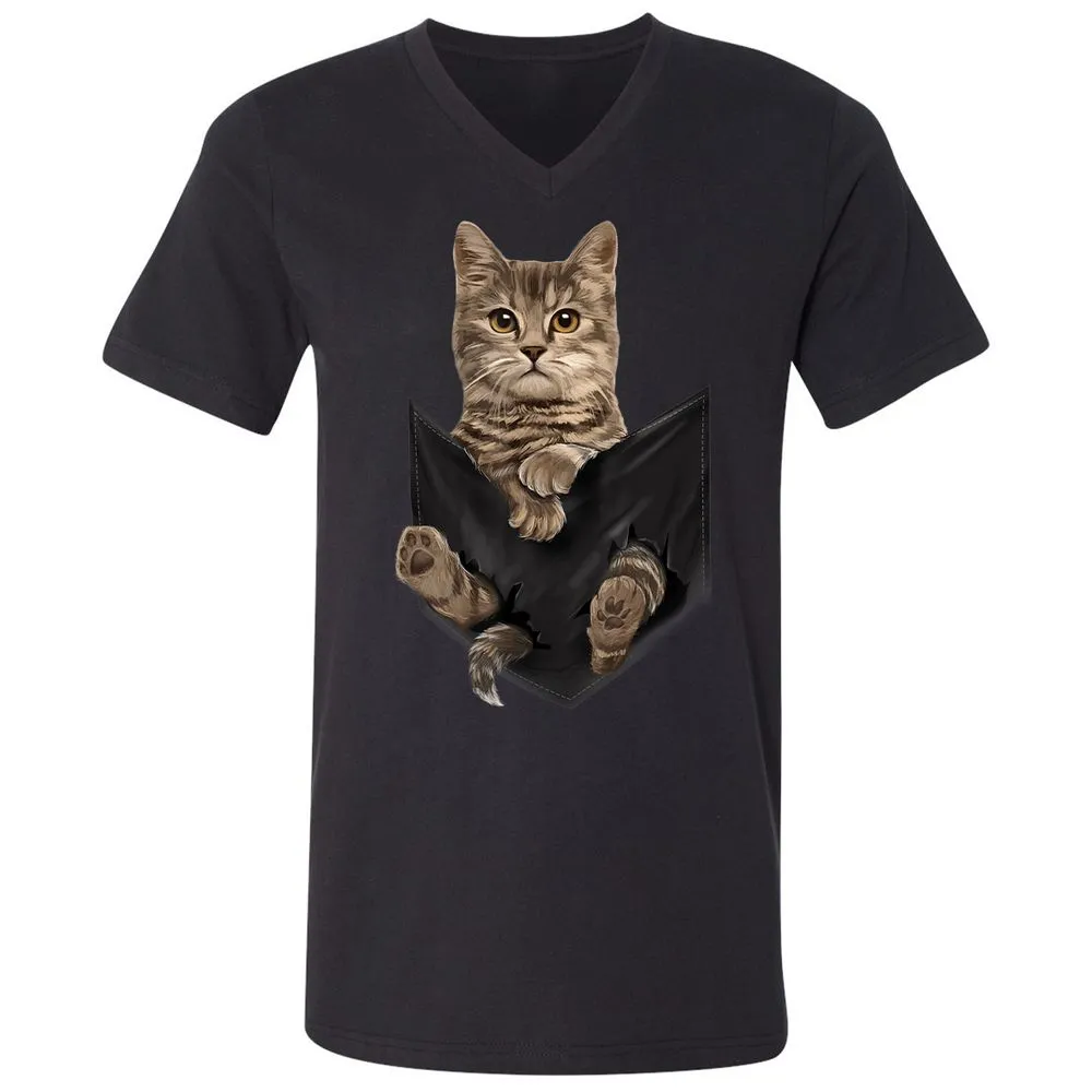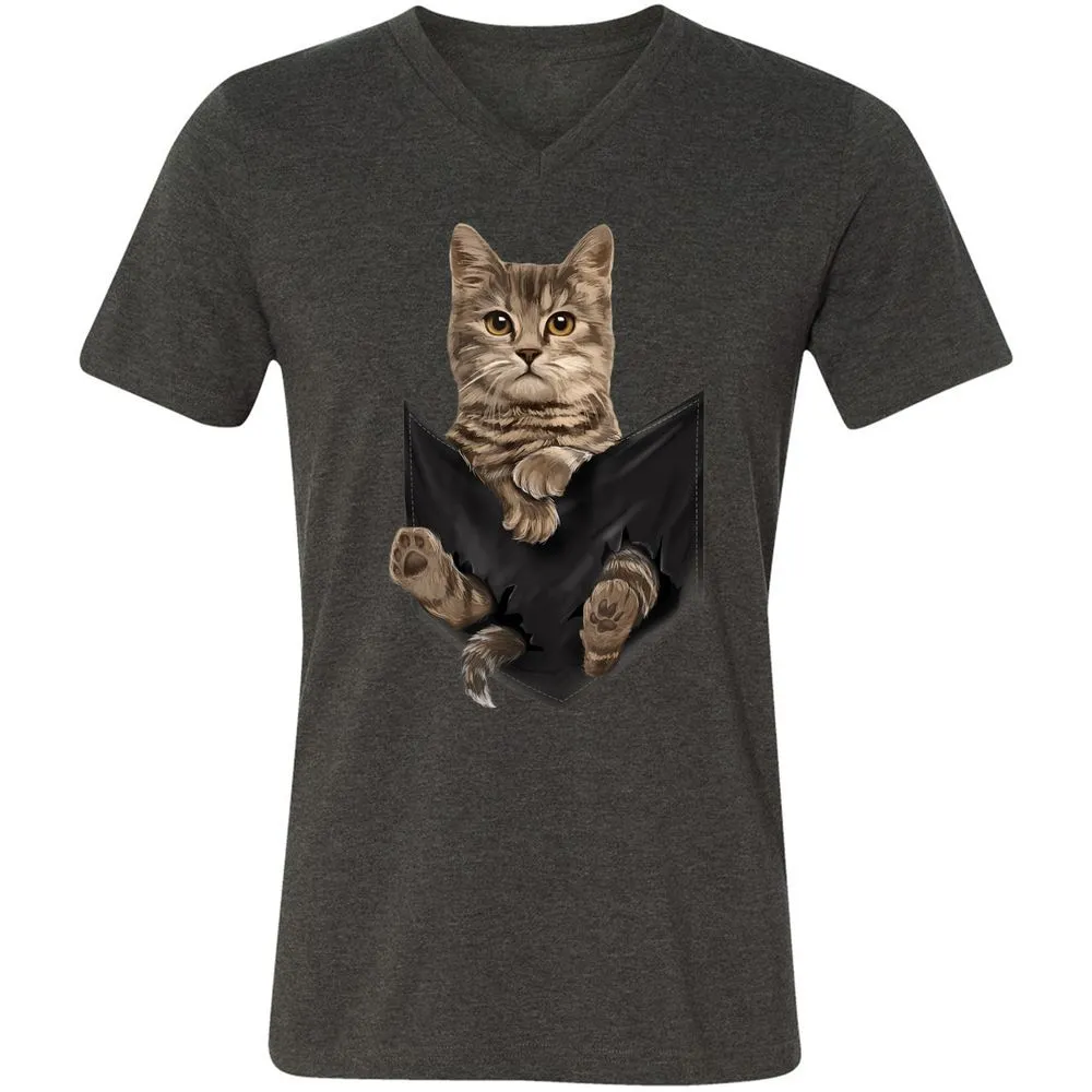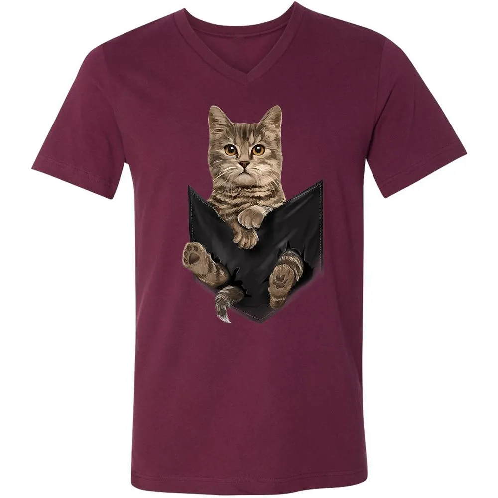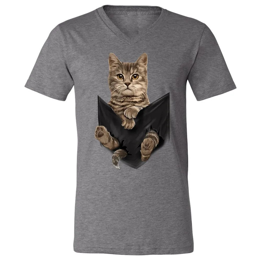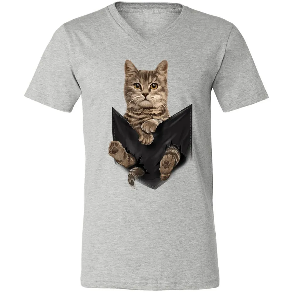 Brown Cat Sits in Pocket Cats Gifts Unisex V-Neck T-Shirt