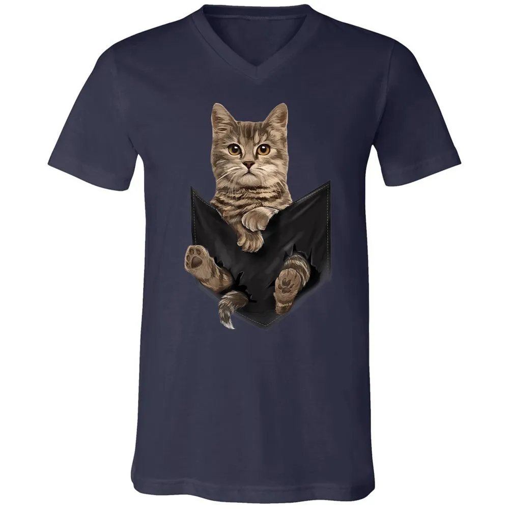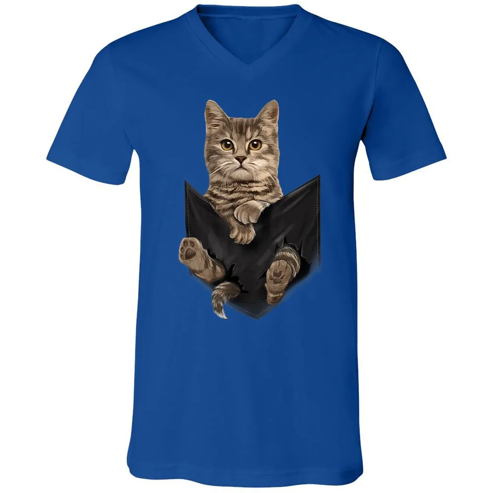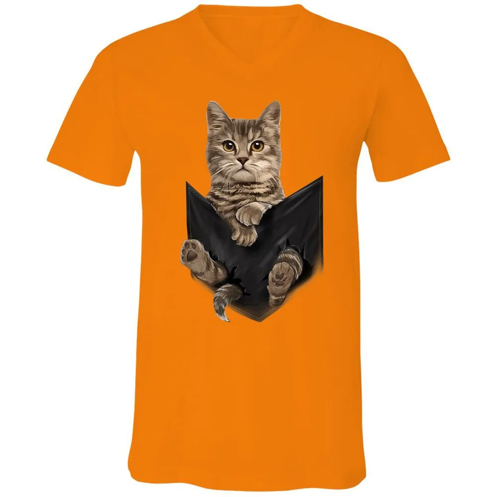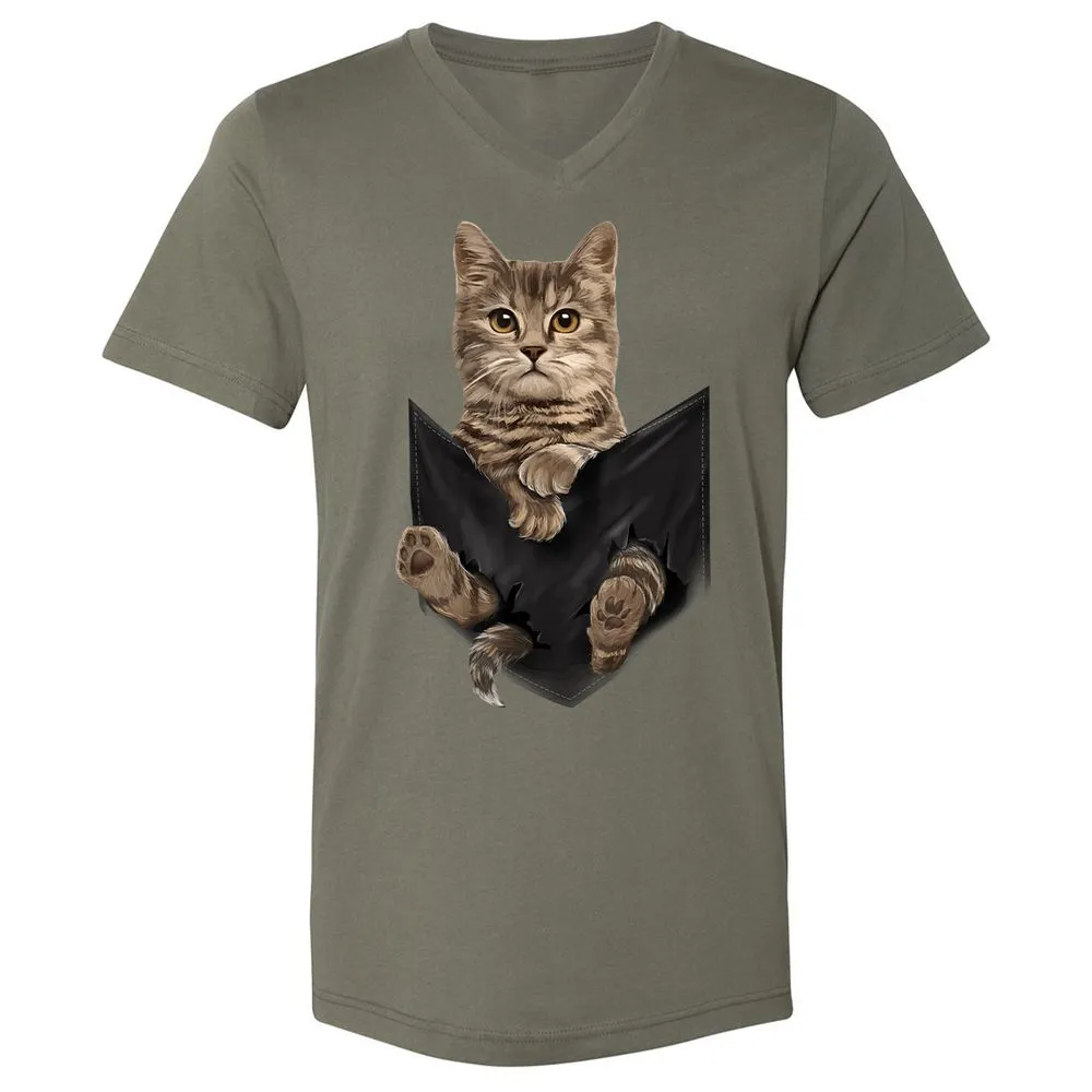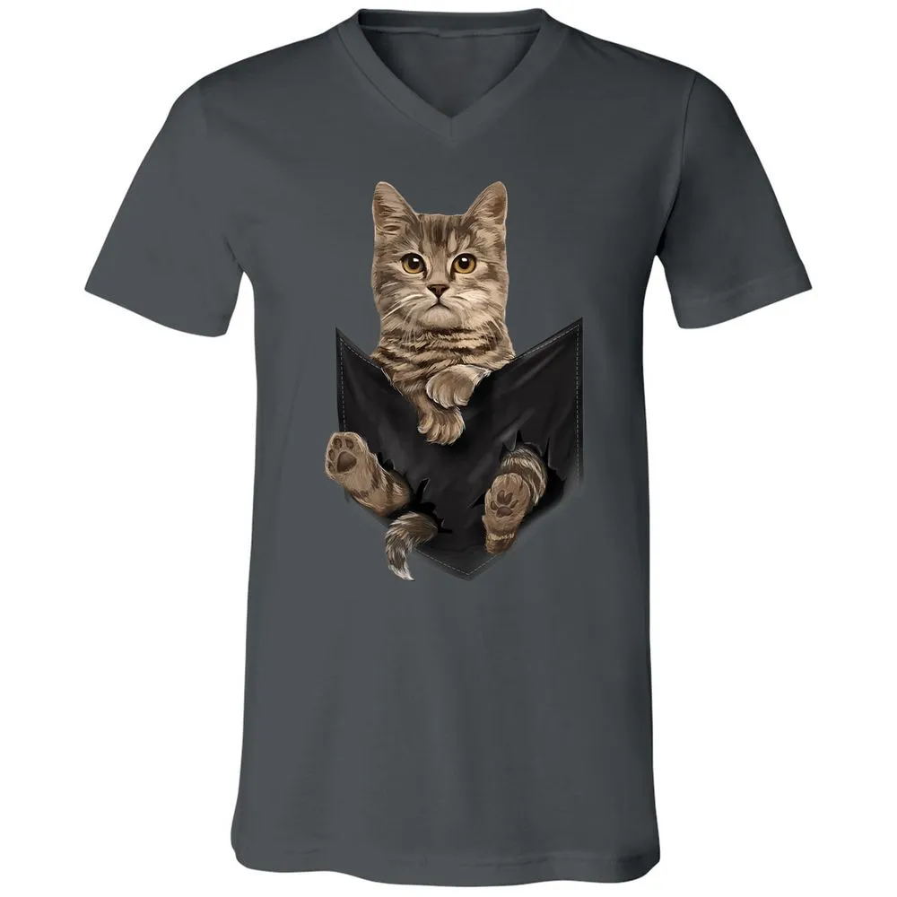 Brown Cat Sits in Pocket Cats Gifts Unisex V-Neck T-Shirt