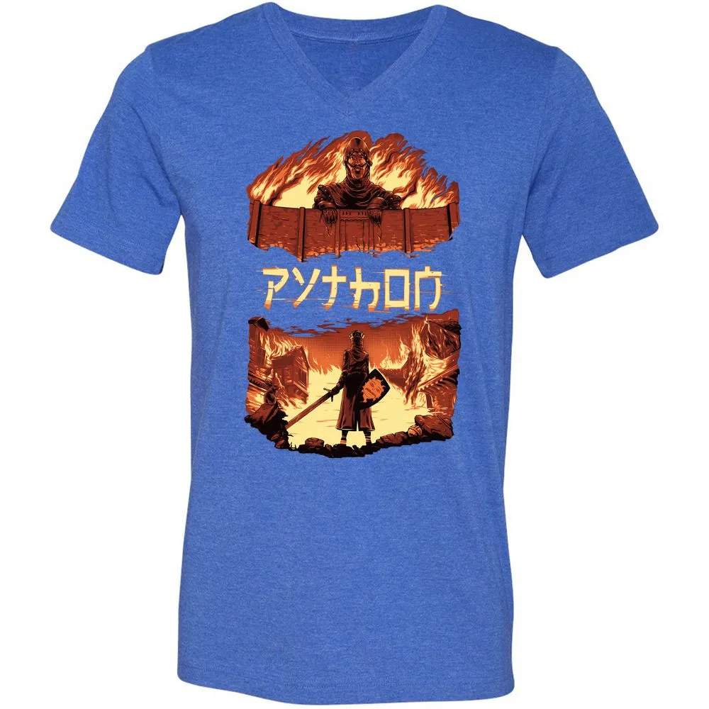 Unisex V-Neck T-Shirt - TAA8EYKU - Heather True Royal - 14