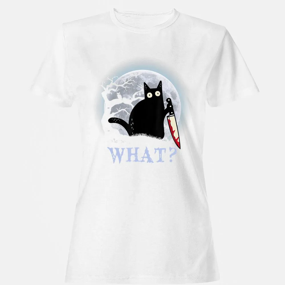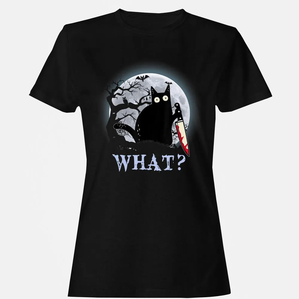 Cat What Murderous Black Cat With Knife Halloween Costume Women's T-Shirt