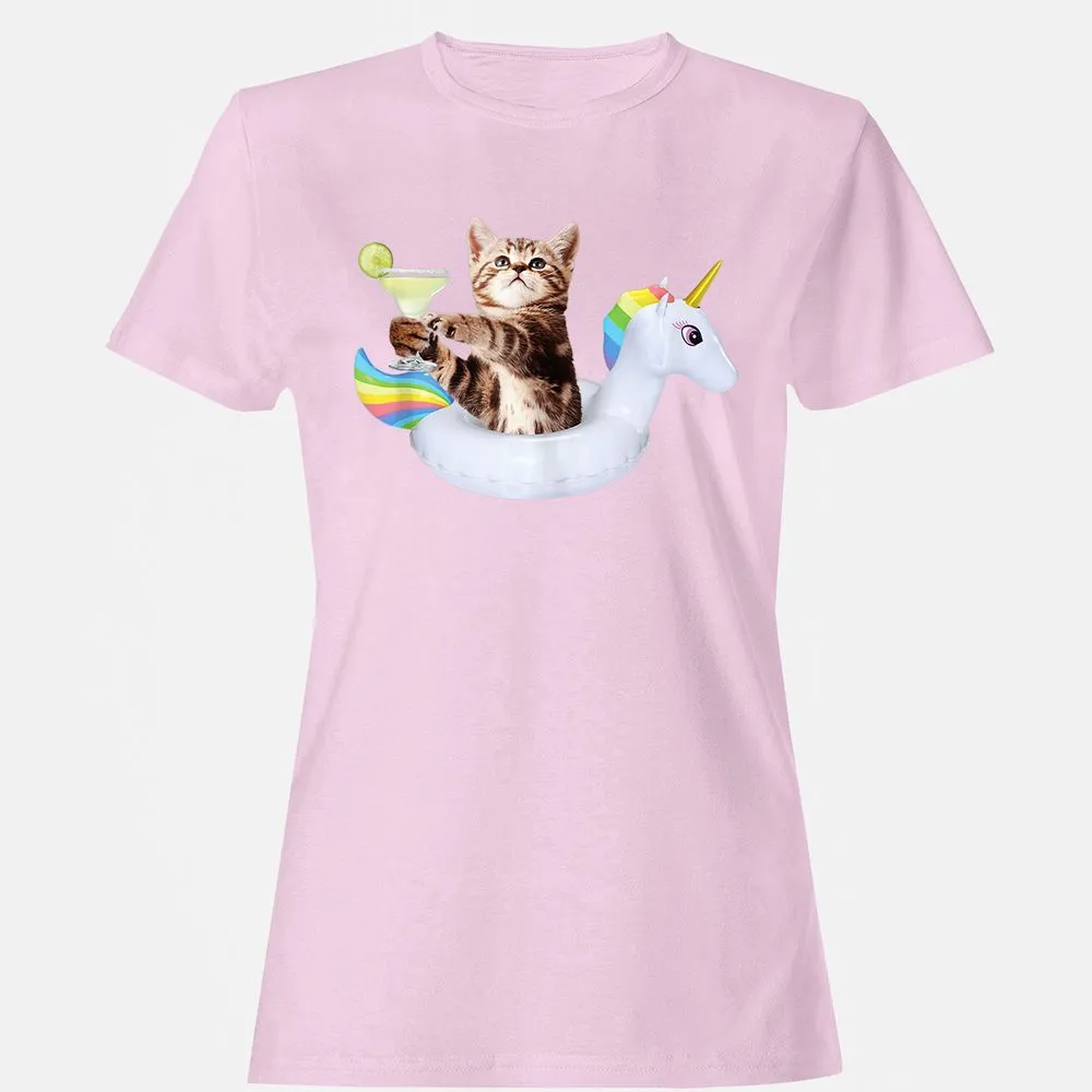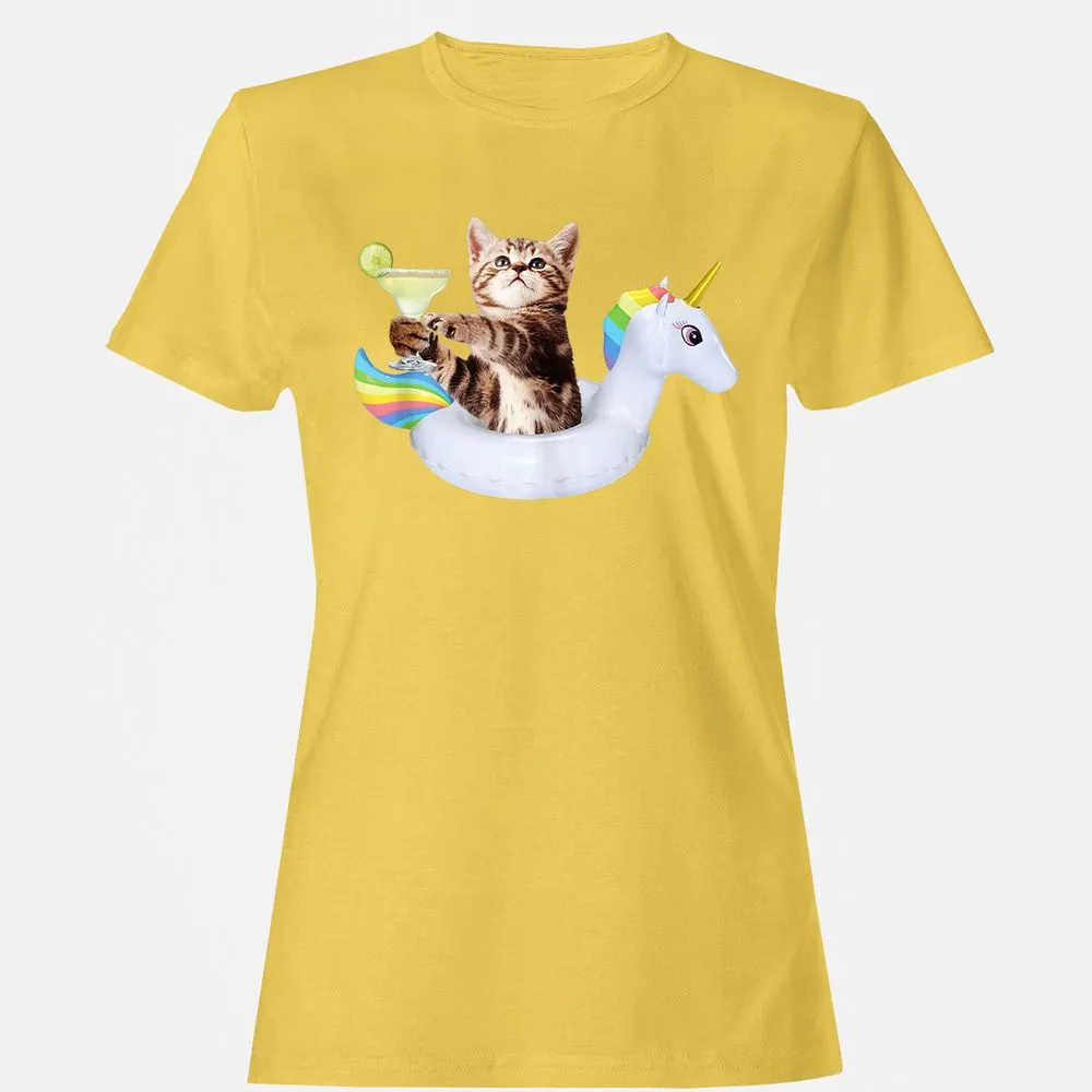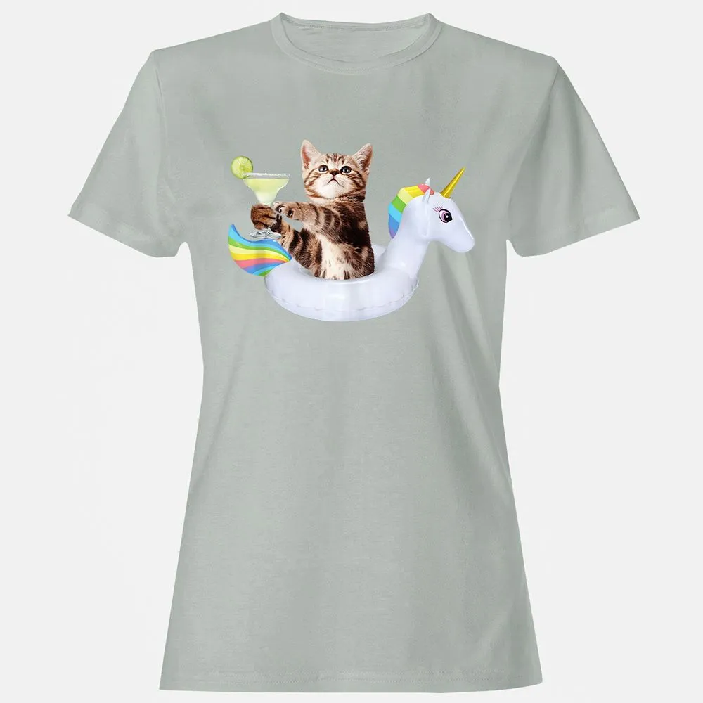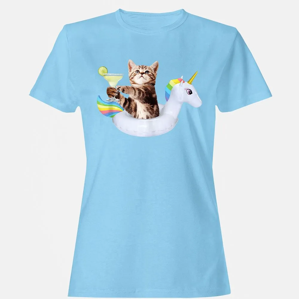 Summer Kitty With Margarita & Unicorn Float Funny Cat Women's T-Shirt