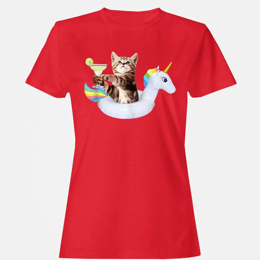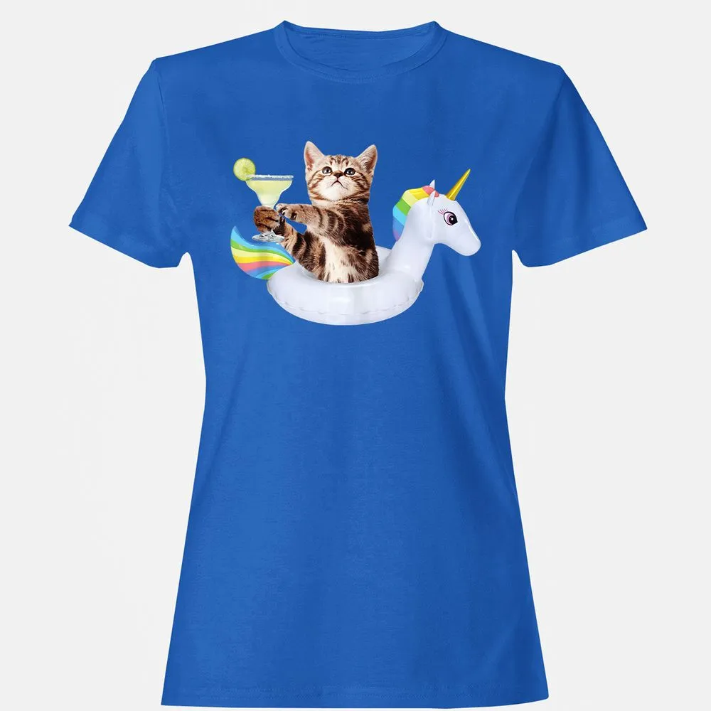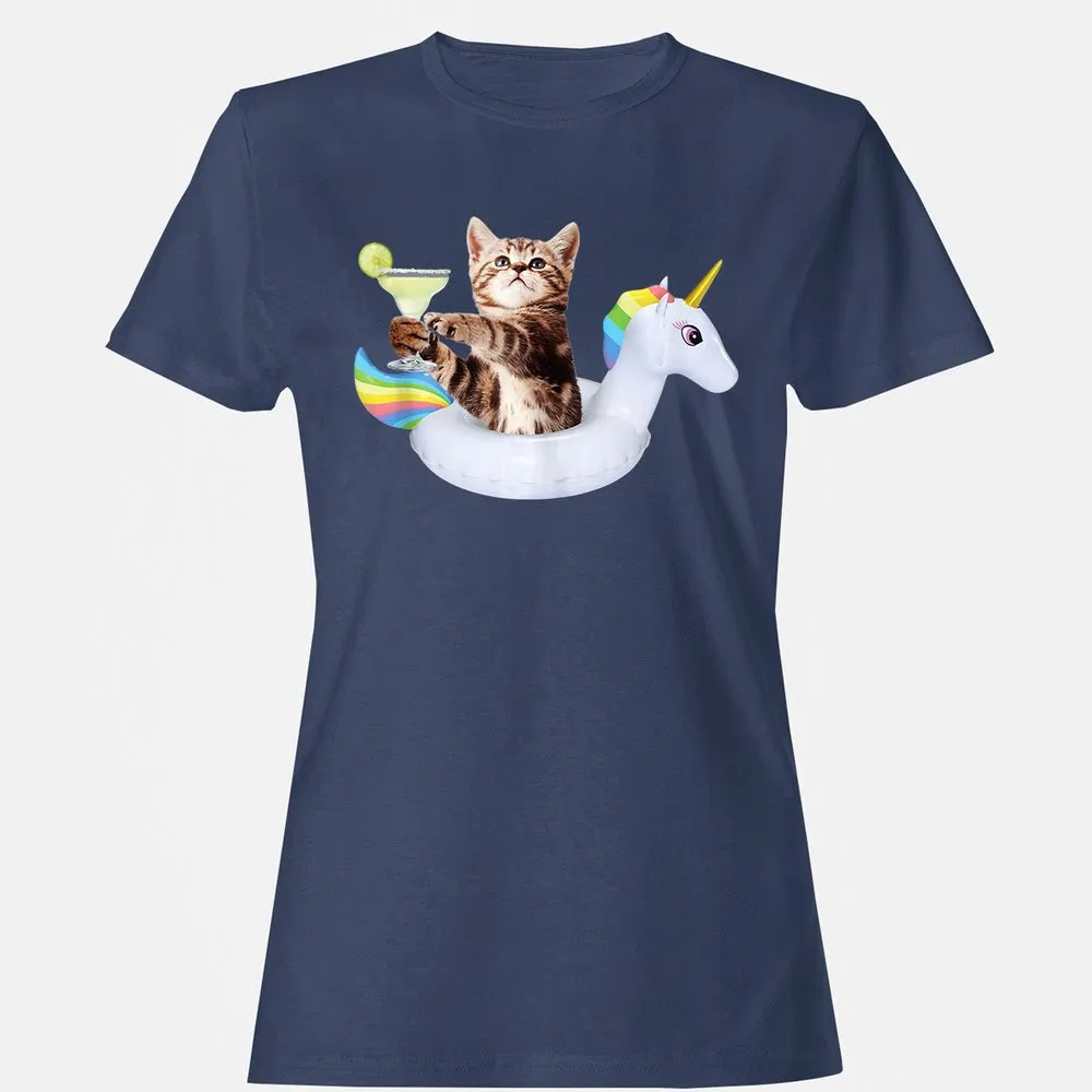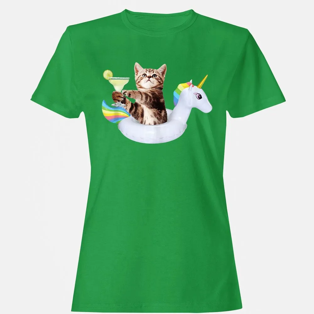 Summer Kitty With Margarita & Unicorn Float Funny Cat Women's T-Shirt